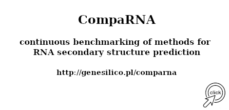 Puton T, Kozlowski L, Rother KM, Bujnicki JM CompaRNA: a server for continuous benchmarking of automated methods for RNA secondary structure prediction. Nucleic Acids Res 2013; 41(7):4307-23. doi: 10.1093/nar/gkt101 |