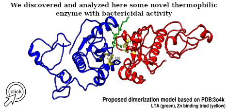 Plotka M, Kaczorowska AK, Stefanska A, Morzywolek A, Fridjonsson O, Dunin-Horkawicz S, Kozlowski L, et al. Discovery and characterization of a novel highly thermostable endolysin from Thermus scotoductus MAT2119 bacteriophage Ph2119 that shows amino-acid sequence similarity to eukaryotic peptidoglycan recognition proteins (PGRPs). Appl Env Microbiol 2013; 80(3):886-95, doi: 10.1128/AEM.03074-13 |