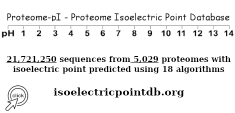Kozlowski LP Proteome-pI 2.0: Proteome Isoelectric Point Database Update. Nucleic Acids Res. 2022 (Database Issue) 50 (D1): D1535–D1540, doi: 10.1093/nar/gkab944 |