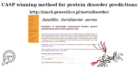 Kozlowski LP, Bujnicki JM MetaDisorder: a meta-server for the prediction of intrinsic disorder in proteins. BMC Bioinformatics 2012; 13:111. doi: 10.1186/1471-2105-13-111  |